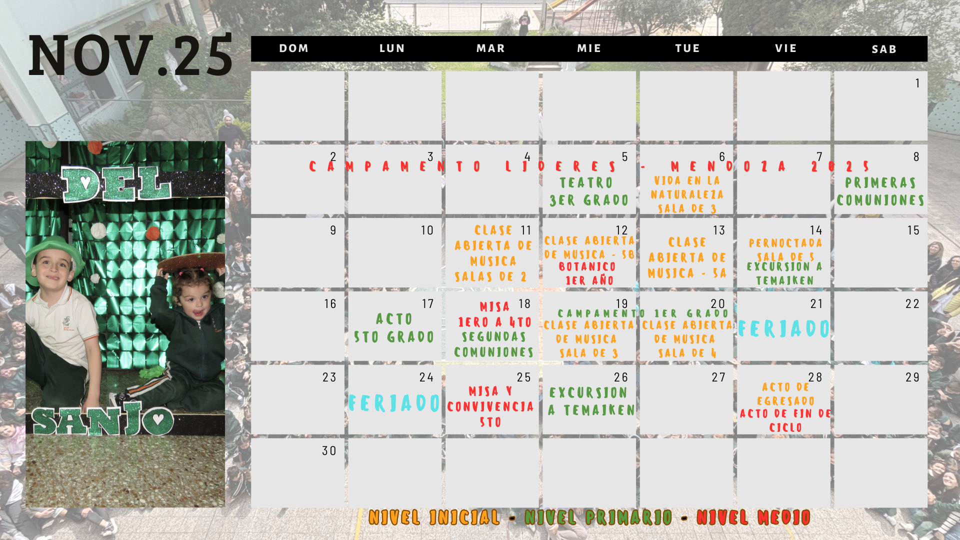 18 noviembre Calendario noviembre 2025 Institucional, Nivel Medio, Nivel Primario, Nivel Inicial Leave a comment Les compartimos el calendario del mes de noviembre:
